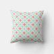 Chic and modern decorative throw pillow in fashionable light sky blue, peach and white diamonds and circles geometric pattern.