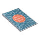 A lively coral circle on a calm blue background with an exuberant floral design of leaves makes this a lovely gratitude journal or anything else. You can customize the name and text to say anything you like.