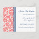 Coral Blue Damask Save the Date Wedding Postcard