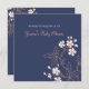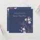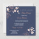 Personalized baby shower invitations in elegant and modern peach pink, dark navy blue and white vintage japanese floral blossoms pattern. Customizable with your text, contact us to request a colour change.
