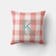Coral Buffalo Check | Teal Monogram Plaid Throw Pillow