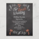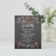 Fresh coral peach and white blackboard effect text with a slate grey background. Celebrate a ceremony by the seaside shore with this cool breezy palm tree and a sketched white chalk look. Nice rustic vintage feel at a beach wedding. Design Copyright © CustomInvitesOnline.com