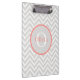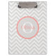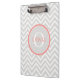 The Coral Chevron Monogram Clipboard features a design of a light grey chevron pattern with a circle emblem outlined in coral. Additional items available with this design as well. Please contact me directly for assistance with personalization.