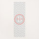 Personalize your own yoga mat with the Coral Chevron Monogram Yoga Mat. Yoga mat design features a light grey chevron pattern with a circle emblem outlined in coral. Additional items available with this design as well. Please contact me directly for assistance with personalization.