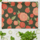 Coral coloured flower tea towel