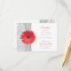 Coral gerbera daisy silver grey and white damask floral wedding reception card. The colours on this coral daisy wedding reply card are silver grey (grey), coral (salmon), and white.