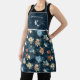 Coral and blue floral apron monogrammed with your family name, initial, and the year your family was established in white fonts against a dark blue background. The floral pattern features blue, coral, and pale yellow flowers, and green leaves and pale berries, against a dark blue background.