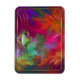 Brilliant orange, pink, blue, green, purple, yellow, and turquoise fractal patterns like a riot of coral, with decorative gold framing containing a single smooth gem.