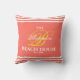 Stylish and elegant living coral colour family beach house monogram script decor throw pillow, yellow colour monogram initial with white bold typography. Just use the "personalize this template" feature to insert your family name, initial and the established date.
