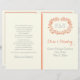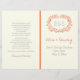 Coral foliage wreath frame folded wedding ceremony and party program featuring a coral orange frame made of leaves and text in grey on ivory. This modern stylish and elegant template is a totally customizable design part of a wedding set perfect for your spring, summer and fall or autumn wedding. You will have to fold it in the centre. Choose only this type of paper-value as it folds well.