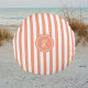 Coral French Beach Stripe Personalized Monogram Round Pillow