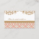Elegant and beautiful french Moroccan tile inspired wedding table place cards with a repeating coral and gold geometric pattern design and gold hued french baroque style floral flourish border. Our upscale and luxe look table place cards are perfect for a Moroccan, Arabian Nights or Aladdin themed wedding. The front and back of these custom cards can be personalized with the names of the bride and groom and wedding date and a special message for your guests. Artwork and design © Chrissy H. Studios, LLC. All Rights Reserved.