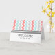 Welcome your new employees to your team and make them feel appreciated with this cheerful and stylish retro peach orange pink, turquoise aqua blue, charcoal grey and white modern zigzags chevron stripes pattern business employee welcome greeting card, gender neutral, a wonderful morale builder.