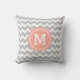 Elegant and modern coral peach, grey and white chevron zigzags stripes pattern custom monogram decorative throw pillow. Fully customizable, add your own initial for a truly unique home decor item.
