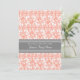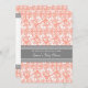 Personalized baby shower invitations in elegant and modern peach pink orange, grey and white classic floral damask pattern. Customizable with your text, contact us to request a colour change.