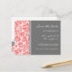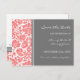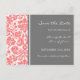 Wedding save the date announcement postcards in elegant and contemporary bright peach orange pink, dark charcoal grey and white classic and vintage floral damask pattern, stylish and fully customizable with your wedding details. Also available in many other products for the wedding party.