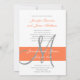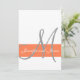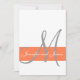 Grey, White and Coral (FF7F50) Wedding Invitation with Your Monogram and Names in a simple, yet elegant modern design. ELKE CLARKE © for MonogramGallery. Shown on basic white paper