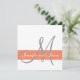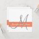 Grey, White and Coral Wedding Invitation with Your Monogram and Names in a simple, yet elegant modern design with grey and orange text. ELKE CLARKE © for Monogram Gallery. Shown on basic white paper. Perfect for a summer wedding or fall wedding.