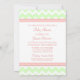 Personalized baby shower invitations in elegant and modern peach pink, pastel mint green and white fun chevron zigzags pattern. Customizable with your text, contact us to request a colour change.