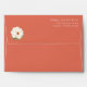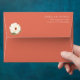 This is a minimalist style image featuring an elegant address label with a soft, delicate white flower on the left side. The background is black, creating a striking contrast that highlights the names "Isabella & Patrick" in a sophisticated orange font. Below the names, the address "1287 Seagrove Lane, Naples, Florida 54102" is neatly printed in a complementary color scheme. The overall mood is refined and classic, making it perfect for formal correspondence or special event invitations.