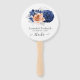 Coral - rustic peach and navy blue watercolor floral wedding favour fan with faux foil silver foliage designed to be quickly and easily customized to your event specifics.