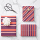 Coral, navy blue and white five stripes pattern wrapping paper sheet
