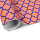 Coral, Navy Blue Moroccan Quatrefoil Pattern #5 Wrapping Paper