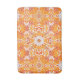 Bath mat in a batik medallion pattern in shades of coral orange, cream, and beige