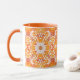 Coral Orange and Cream Batik Medallion Pattern Mug