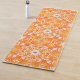 Yoga Mat in a batik medallion pattern in shades of coral orange, cream, and beige