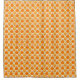 Shower curtain in a batik pattern in shades of coral orange, cream, and beige, accented with black