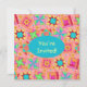 Invite a quilter or quilt lover with this colourful fully customizable square quilt invitation. Fully customize on the front and back to add your own words, names and other information. This original quilt art makes a vibrant invitation. Quilt art based on original art features favourite patchwork quilt blocks plus unique blocks in vibrant and dynamic colours of orange, yellow, pink, turquoise, and lime green on a coral orange background for a beautiful colour palette. A turquoise teal blue oval is on the front of the card to say "You're Invited" or other words of your choice. Show your love of quilting with these quilt art designs with other quilt art products. Quilt art is original art from fabric and quilt designer Phyllis Dobbs and is in a fabric collection from Quilting Treasures. This art is available on other products and in several colour backgrounds. More products are available in Phyllis' BusinesswithFlair store. Match with coordinating stamps, envelopes, stickers and return address labels.