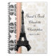 A sweet and sophisticated Parisian style french themed EIFFEL TOWER wedding guest book with a vintage antique black and white damask floral border, coral and peach printed ribbon and golden hued scalloped border and the Eiffel Tower on it. These are perfect for an french themed wedding, engagement party or bridal shower. Personalize it with the names of the bride and groom and their wedding date. Designed by Chrissy H. Studios, LLC. All Rights Reserved.