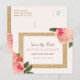 Coral Peonies and Gold Glitter Save the Date Postcard - Designed by Colourful Designs Inc. Copyright 2015. Text can be personalized.