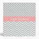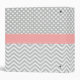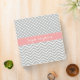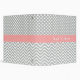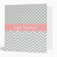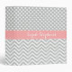 A cute personalized binder with light grey polka dot and chevron patterns and a coral pink ribbon design. Pretty and elegant.