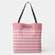 Elegant coral pink and white Tote Bag. Text can be personalized.
