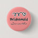 Coral pink bridesmaid buttons with cute whimsical love heart and elegant font. Cute print for bachelorette party, bridal shower and wedding party. Visit our fun store for more classy and fancy designs for marriage. Customizable background colour.