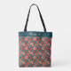 Bright coral red and delicate pink flowers with forest green foliage in a retro chinoiserie pattern creates a beautiful tote bag. Bright colours, very feminine, very stylish.