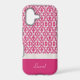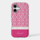 This case features a unique and elegant coral and white damask pattern on the top, and a solid coral personalized bottom. The two are separated by a white "ribbon". Easy to customize. **Please note -- the image is printed on the case, which contains no actual ribbon or fabric.**