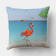 Coral Pink Flamingo & Palm Leaf on the Beach Throw Pillow
