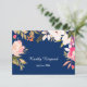 Coral Pink Floral Border Navy Blue Wedding RSVP Card