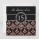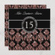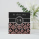 CORAL PINK GLITTER EFFECT BLACK DAMASK QUINCEANERA INVITATION