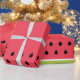 Coral pink and green watermelon colour stripes with pips wrapping paper