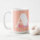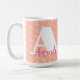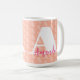This coral, pink and white coffee mug is feminine and modern. Enter your initial to create a designer geometric pattern background. Then enter your initial again along with your name for a monogram mug that is perfect for business or personal use.