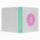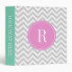 Coral pink mint green and grey chevron pattern 3 ring binder. Trendy zigzag stripe design with chic monogram name initial letter. Personalizable background colour and text. Stylish typography. Classy modern grey zig zag striped cover. Handy as elegant wedding photo album, recipe book, cook book, couponing, school, office etc. Custom supplies for home and work.