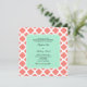 Coral Pink Quatrefoil and Mint Green Wedding Invitation
