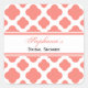 Coral Pink Quatrefoil Pattern Bridal Shower Square Sticker