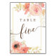 Coral Pink Rose and Gold Frame Floral Wedding Table Number