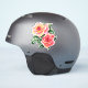 Sticker in two roses, in shades of deep coral to pastel peach pink, with jade green leaves