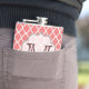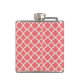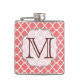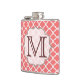 Coral Quarterfoil Lattice Quarter Foil Monogram Initial Personalized Custom Fabric Pattern Whiskey Flask